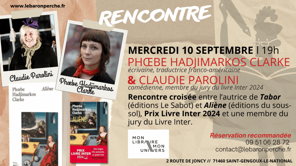 Phœbe Hadjimarkos Clarke est écrivaine, traductrice franco-américaine. Autrice de Tabor (édition Le sabot) et de Aliène (éditions du sous-sol), prix du Livre Inter 2024.